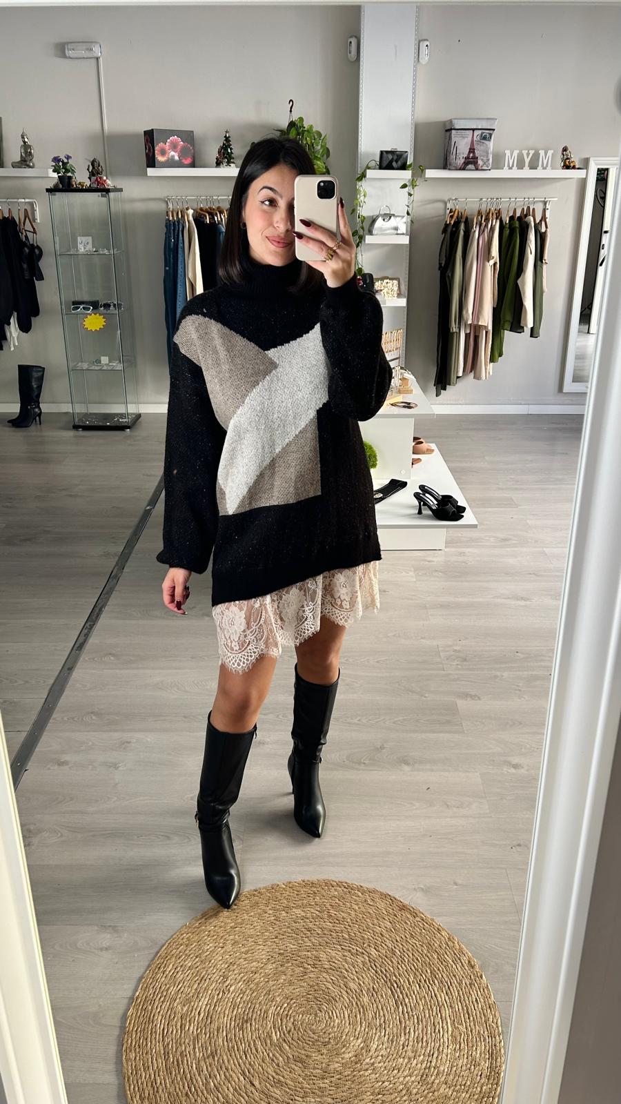 Vestido Punto Encaje